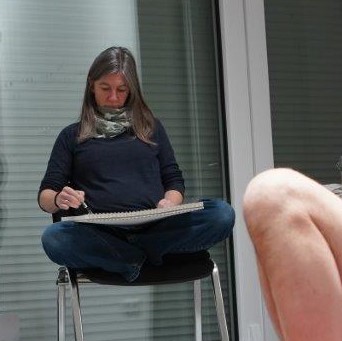 Ein ganz besonderer Kurs, der so zum ersten Mal stattgefunden hat, war der Kurs „Freude am Zeichnen – Abstraktes Skizzieren “ mit Hinrich Schüler. Sowohl die Teilnehmerinnen als auch der Dozent waren begeistert von dieser Art des Zeichnens, den Dynamiken, die daraus entstanden, und den Ergebnissen. Auch bei mir hat der Kurs so Einiges ausgelöst. Ich konnte mich einmal so richtig „freizeichnen“ und habe tolle neue Impulse bekommen. Ich kann den Kurs (der nächstes Jahr wieder stattfinden wird) nur jedem empfehlen!